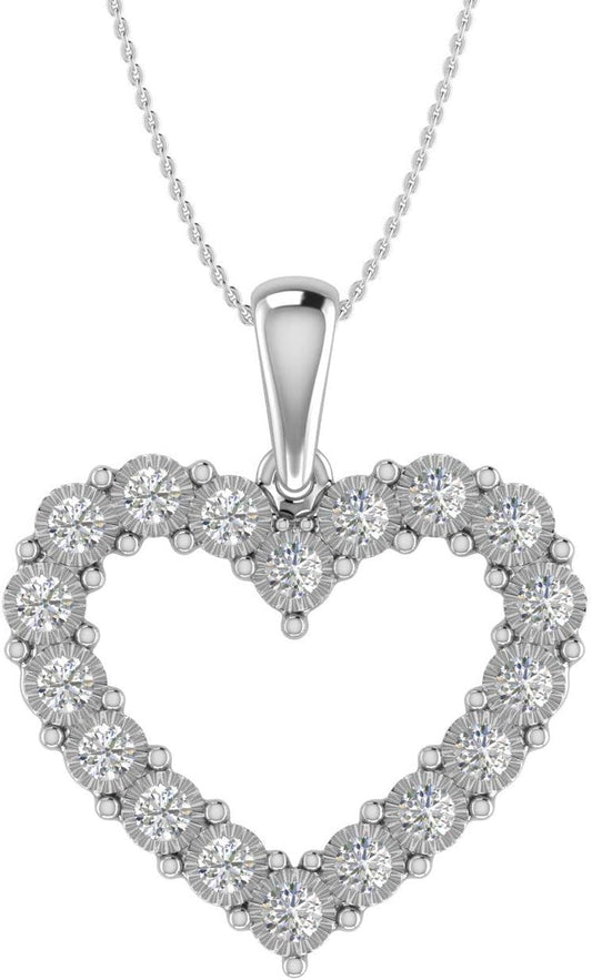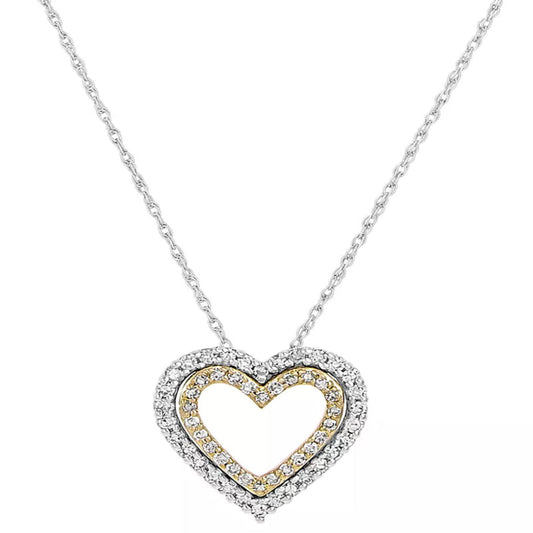 1/4 Carat Diamond Heart Pendant Necklace in 10K Solid Gold with Silver Chain