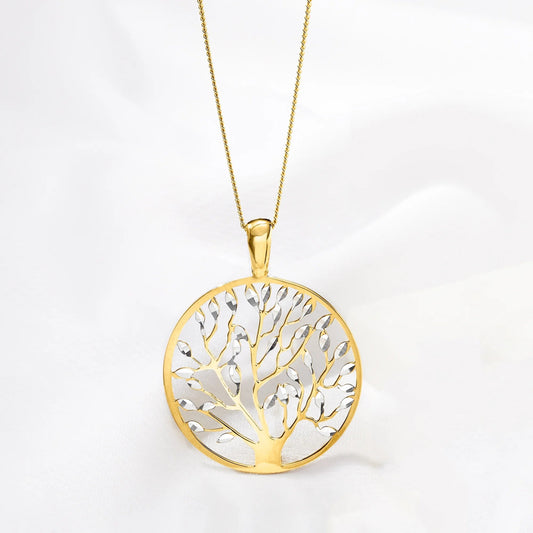 Italian 18Kt Gold-Plated Sterling Silver Cut-Out Tree of Life Pendant Necklace for Women