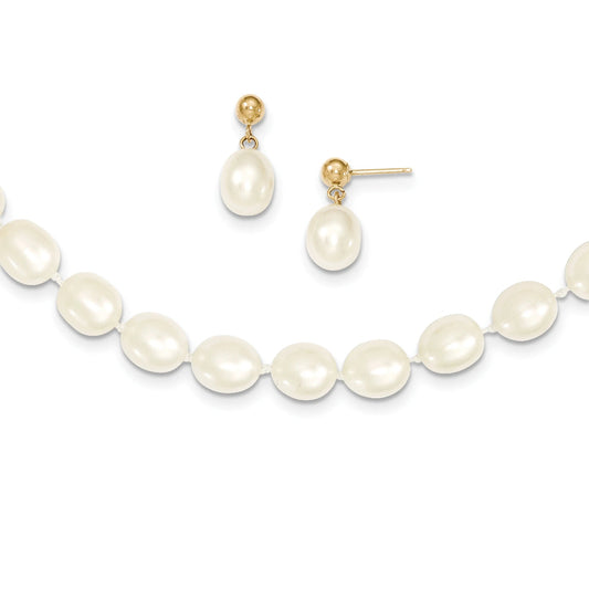 14K Gold 7-8mm White Rice Freshwater Cultured Pearl Necklace and Earring Set, 18 Inches, XF394SET