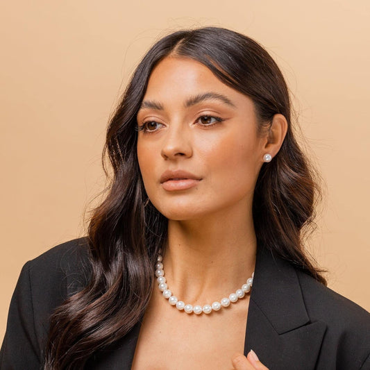Sterling Silver Round White Simulated Shell Pearl Choker Necklace for Women