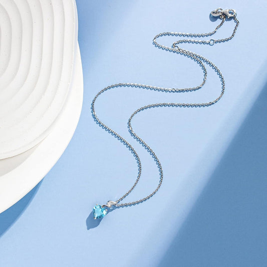 14K Solid White Gold Diamond and Gemstone Heart Pendant Necklace with Sterling Silver Chain - 8mm Birthstone Jewelry for Women, Ideal for Anniversaries and Birthdays