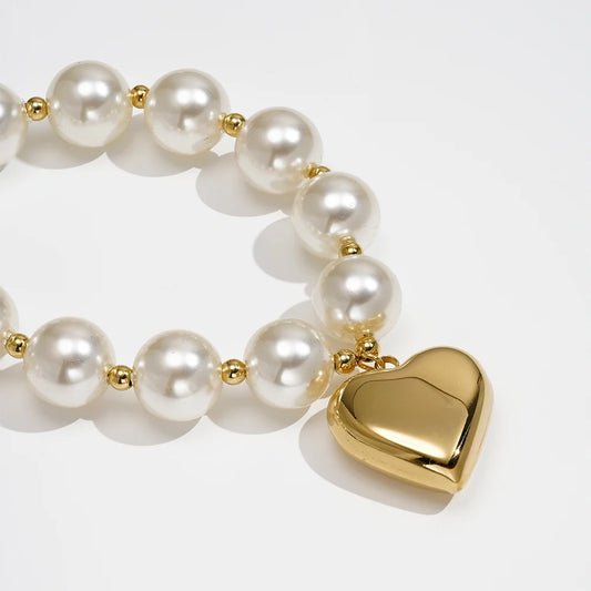 FASHION 14MM Pearls Heart Pendant Necklace For Women's Stainless Steel 18K Plated Gold Fashion Dating Jewelry P3548