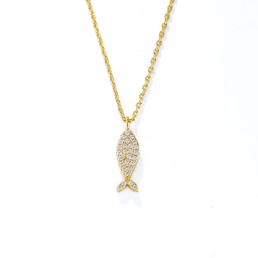 14k gold plated Cute animal Zircon Fish Pendant Necklace jewelry 925 Sterling Silver necklace for Kids Girls