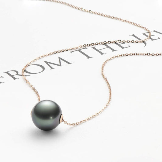 18K Gold Tahitian Cultured Black Pearl Pendant Necklace for Women, 10-11mm Floating Pearl Chain Jewelry Gift for Birthdays, Anniversaries, and Christmas